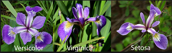 • 3 species of Iris flowers (Setosa, Virginica, and Versicolour)