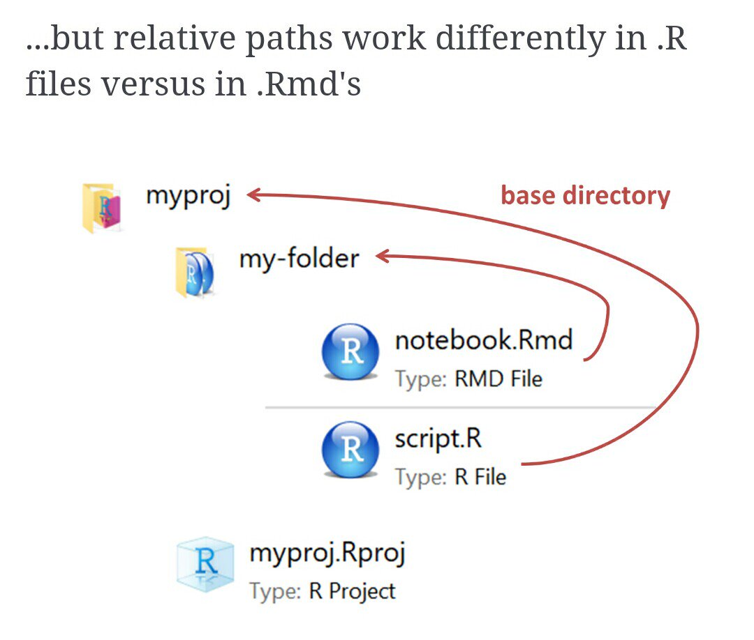 here() to load dataThe here() function will start at the working directory (where your .Rproj file is) and let you write out a file path for anything