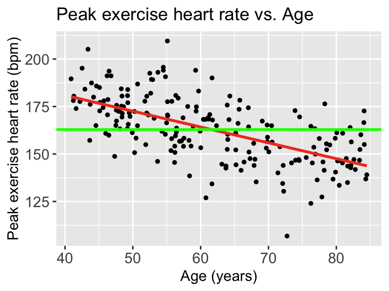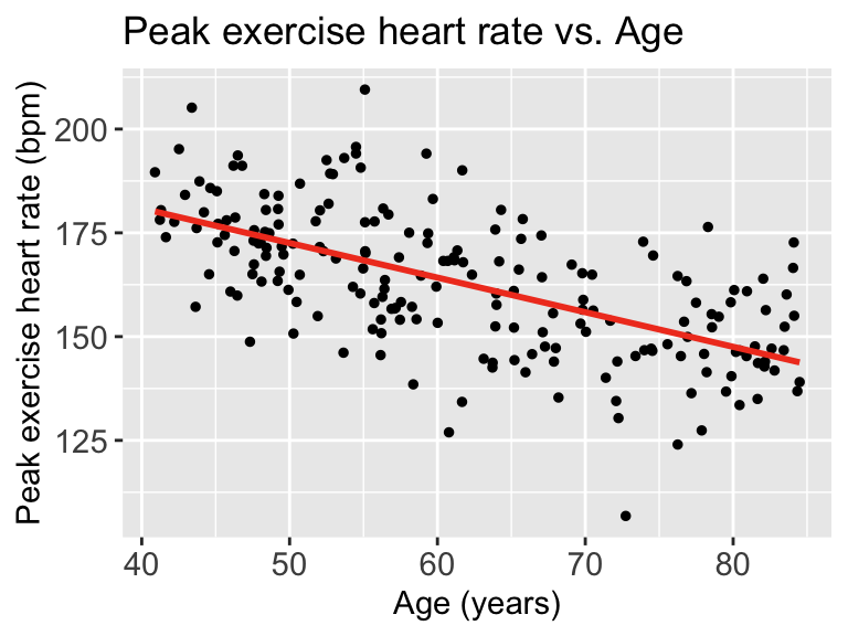 title = "Peak exercise heart rate vs. Age") +