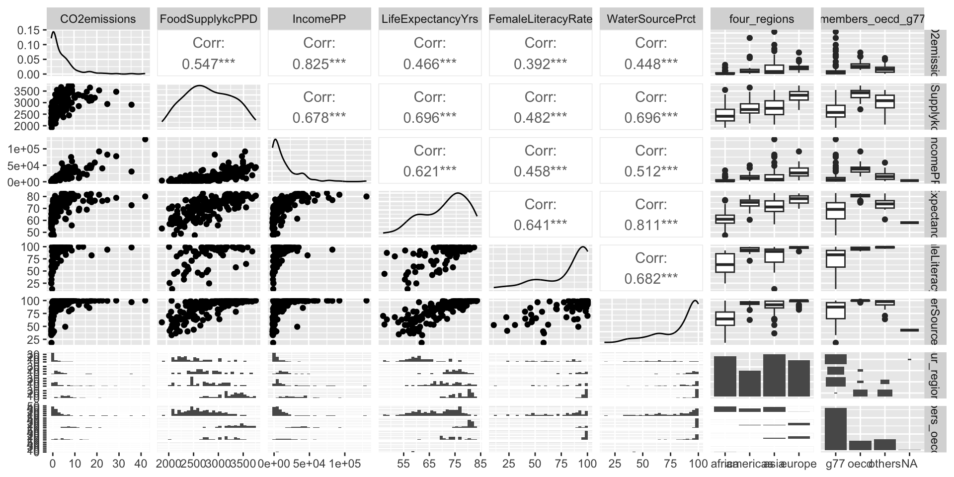 • We have seen a plot of Life expectancy vs. female literacy rate with different levels of food supply colored (Lesson 8)