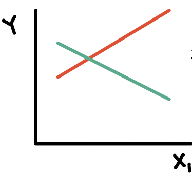 • So the coefficient estimating the relationship between \(Y\) and \(X_1\) changes with another variable