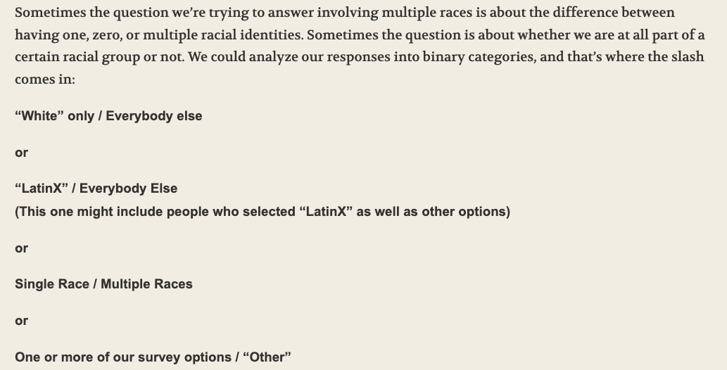 raceombmulti and genderIdentityThere is extra data management skills that we need to address these
