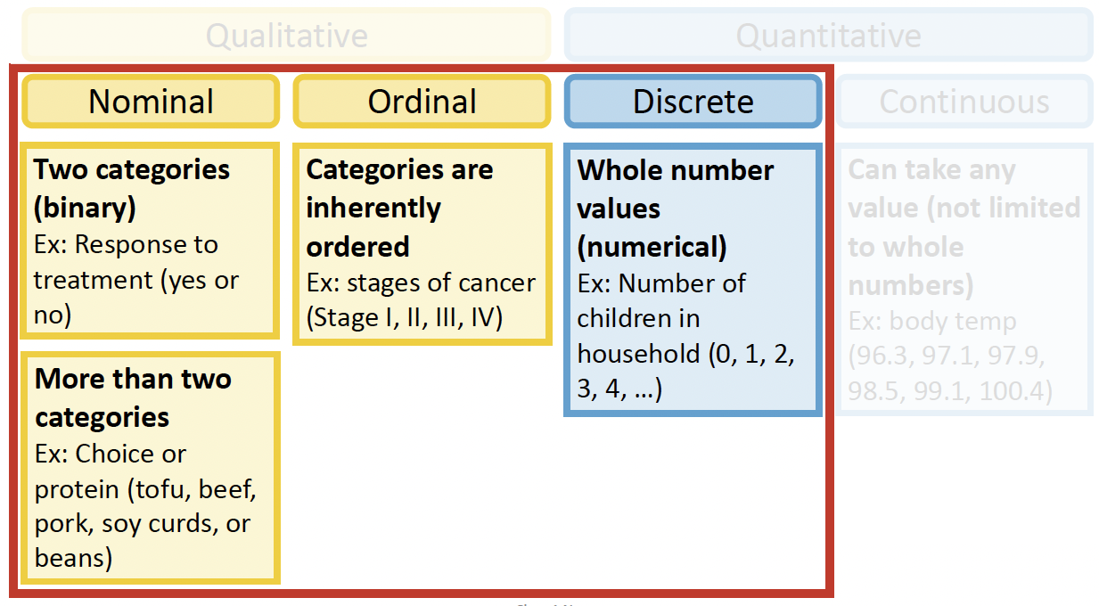 Categorical data analysis focuses on the statistical methods for categorical responses/outcomes