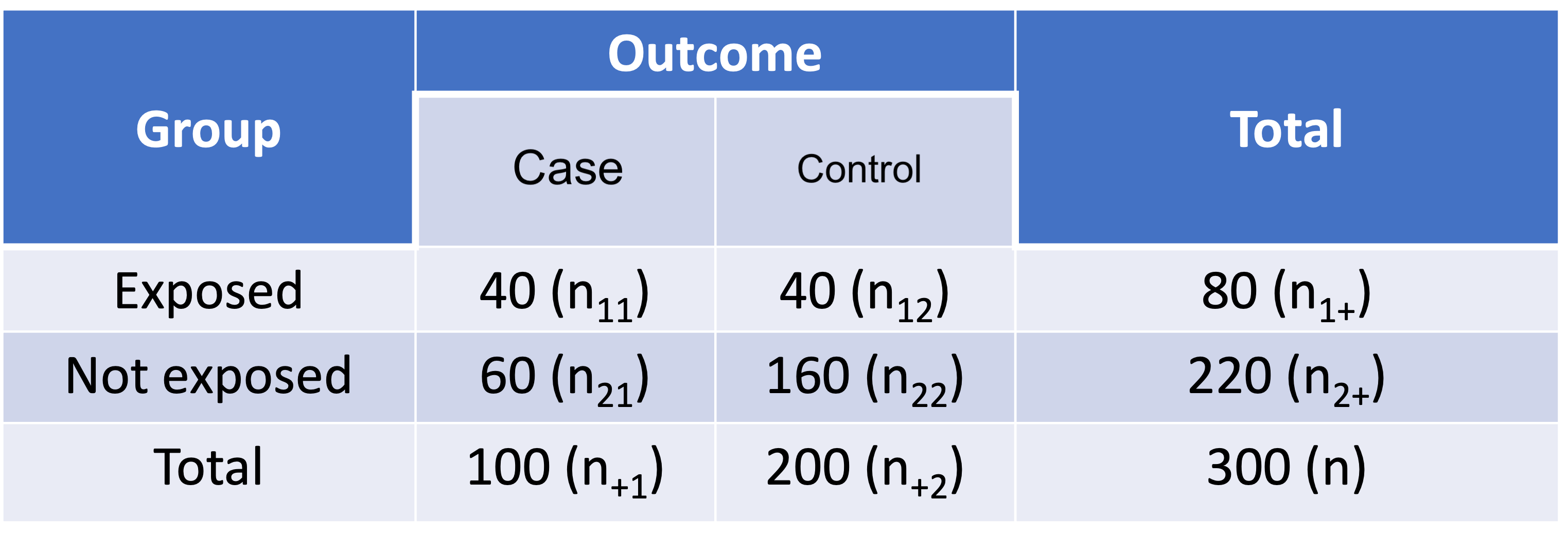 | Risk difference | \(\widehat{RD} = \widehat{p}_1 - \widehat{p}_1 = \dfrac{n_{11}}{n_1} - \dfrac{n_{21}}{n_2}\) |