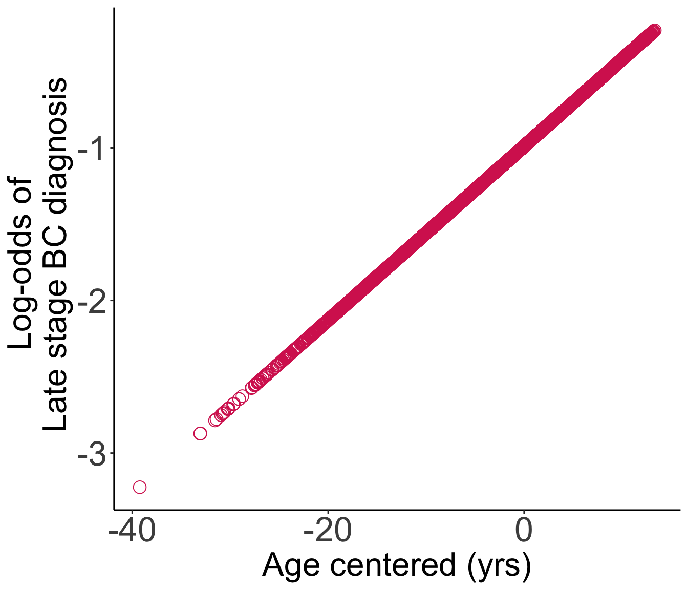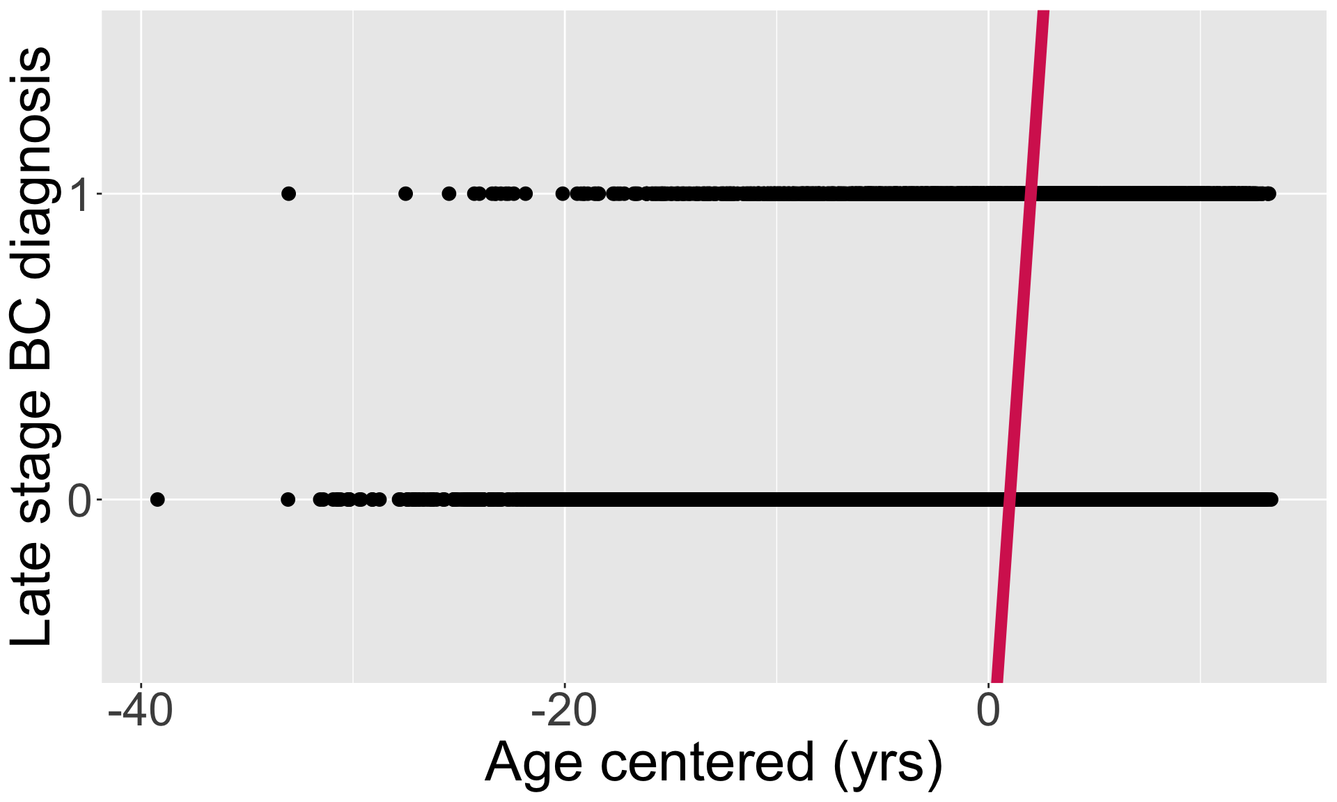 glm(formula = Late_stage_diag ~ Age_c, family = binomial, data = bc)