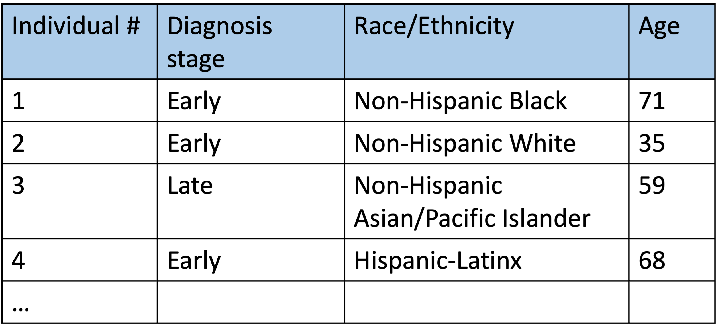 Question: Is race/ethnicity and/or age associated with an individual’s diagnosed stage of breast cancer?