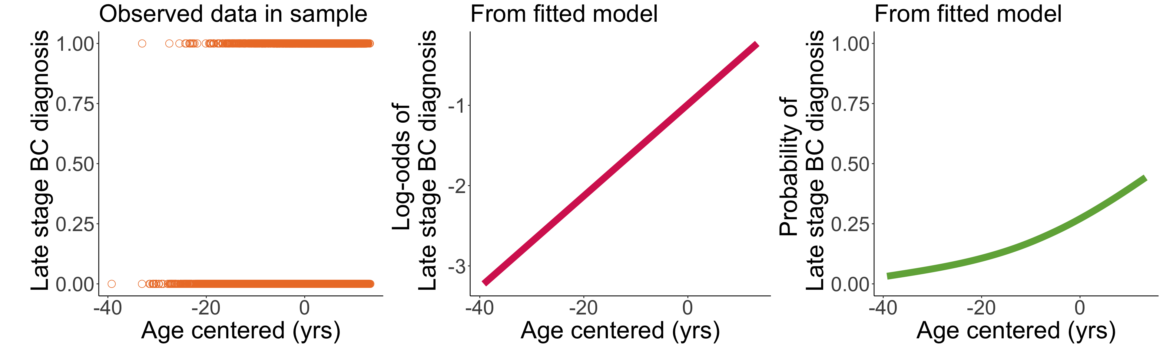 We may be interested in predicting probability of having a late stage breast cancer diagnosis for a specific age.