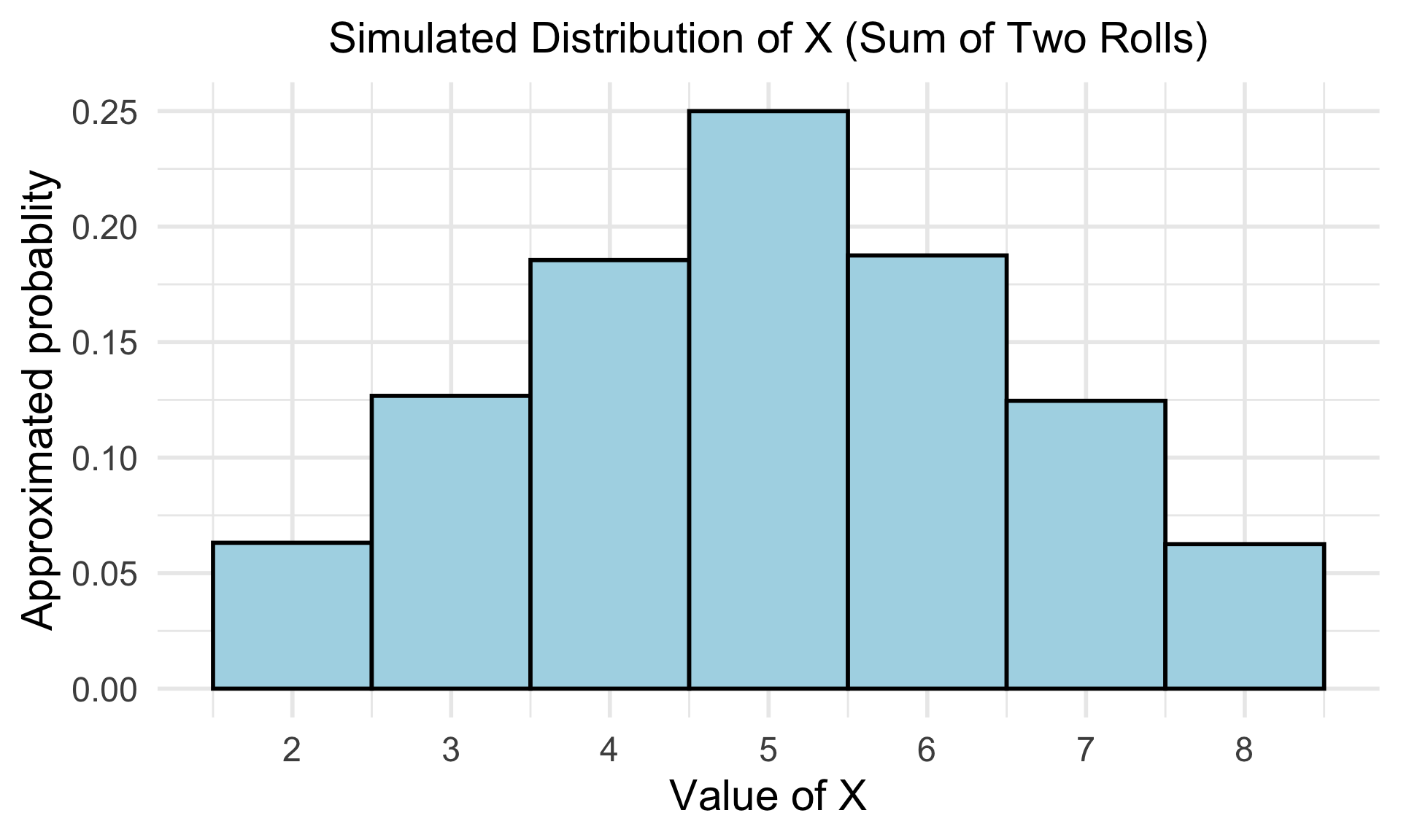 labs(title = "Simulated Distribution of X (Sum of Two Rolls)",