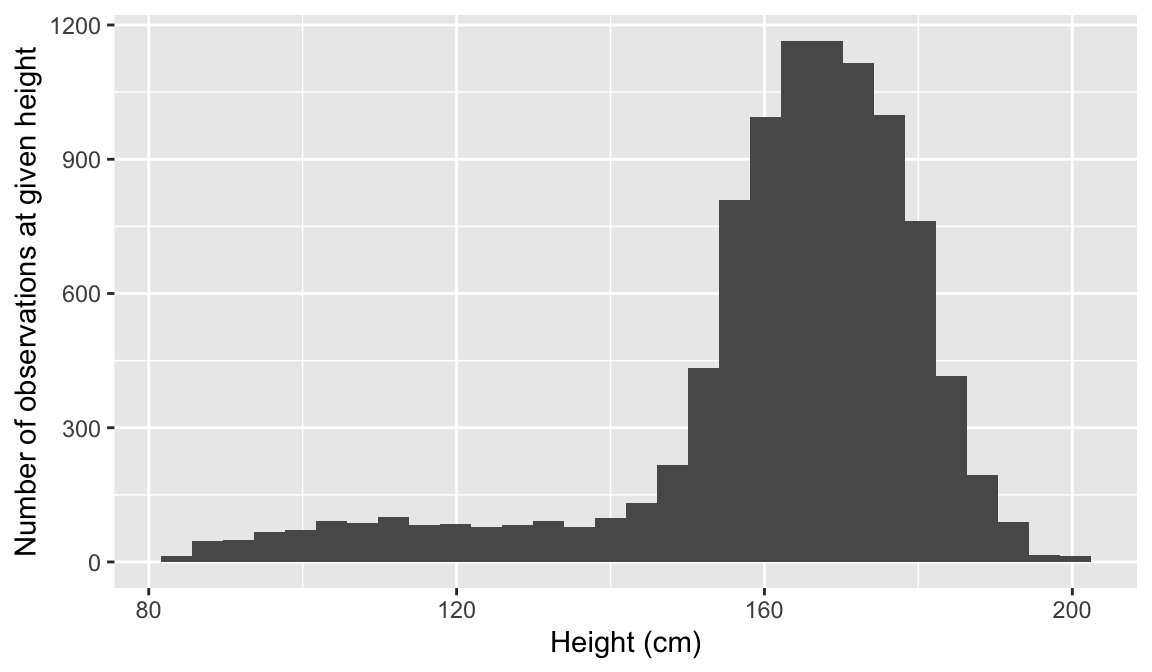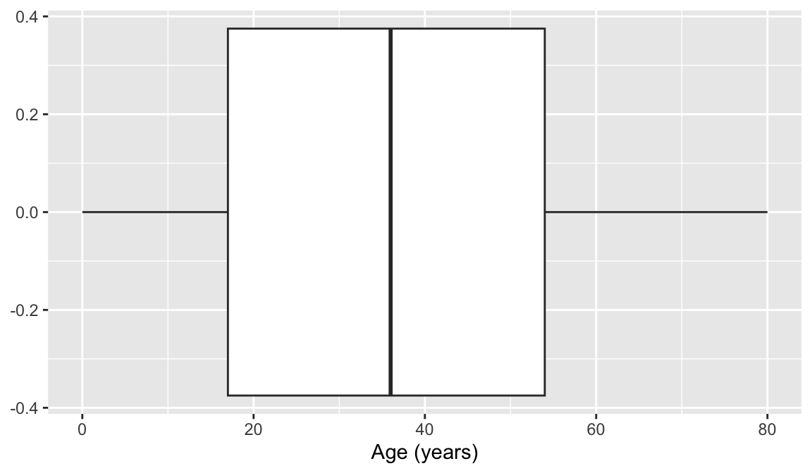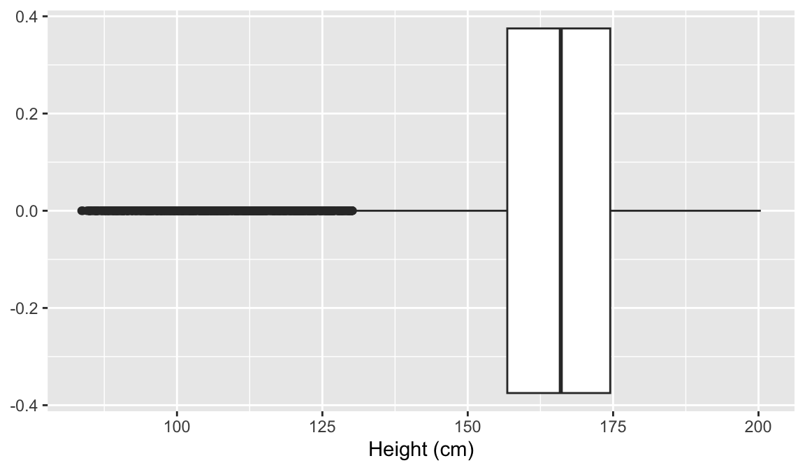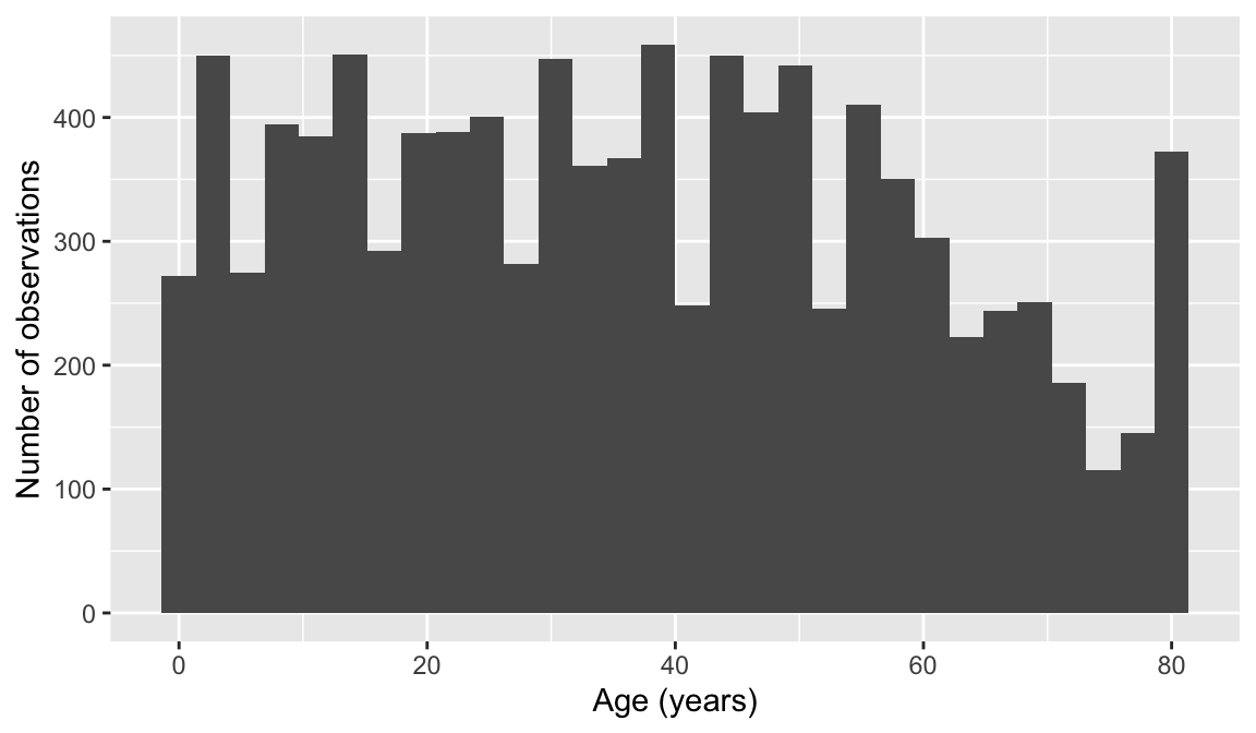 Then I can use the function, length() to see how long the list of unique IDs is. length(unique(NHANES$Age))