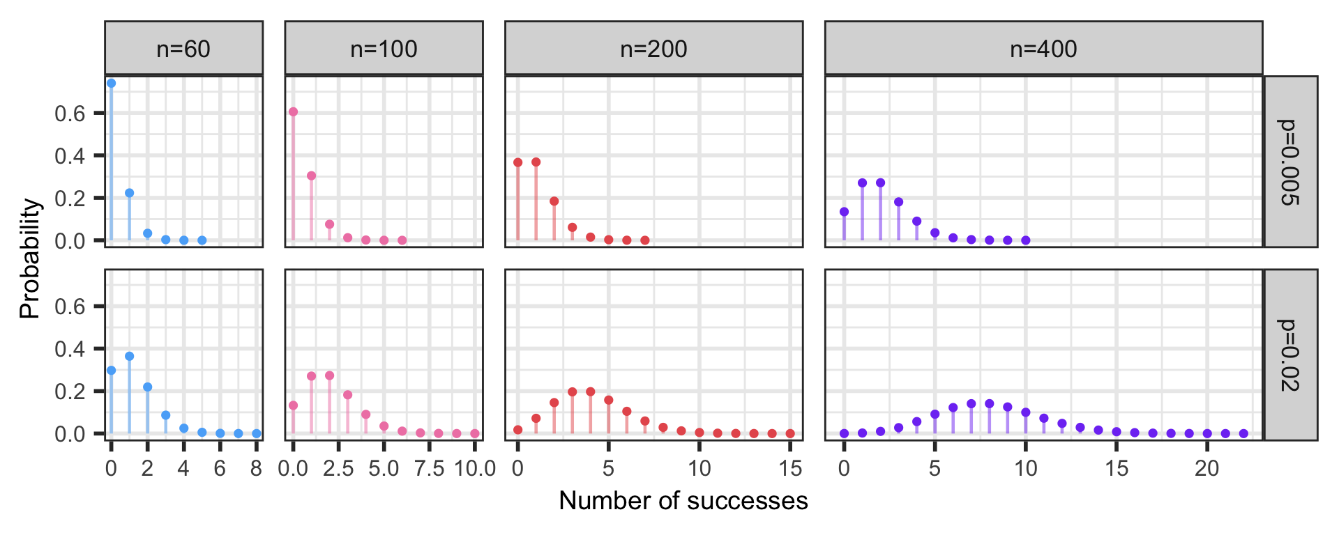 The Poisson distribution is often used to model count data (# of successes), especially for rare events