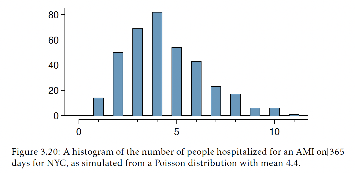 Example: historical records of hospitalizations in New York City indicate that an average of 4.4 people are hospitalized each day for an acute myocardial infarction (AMI)