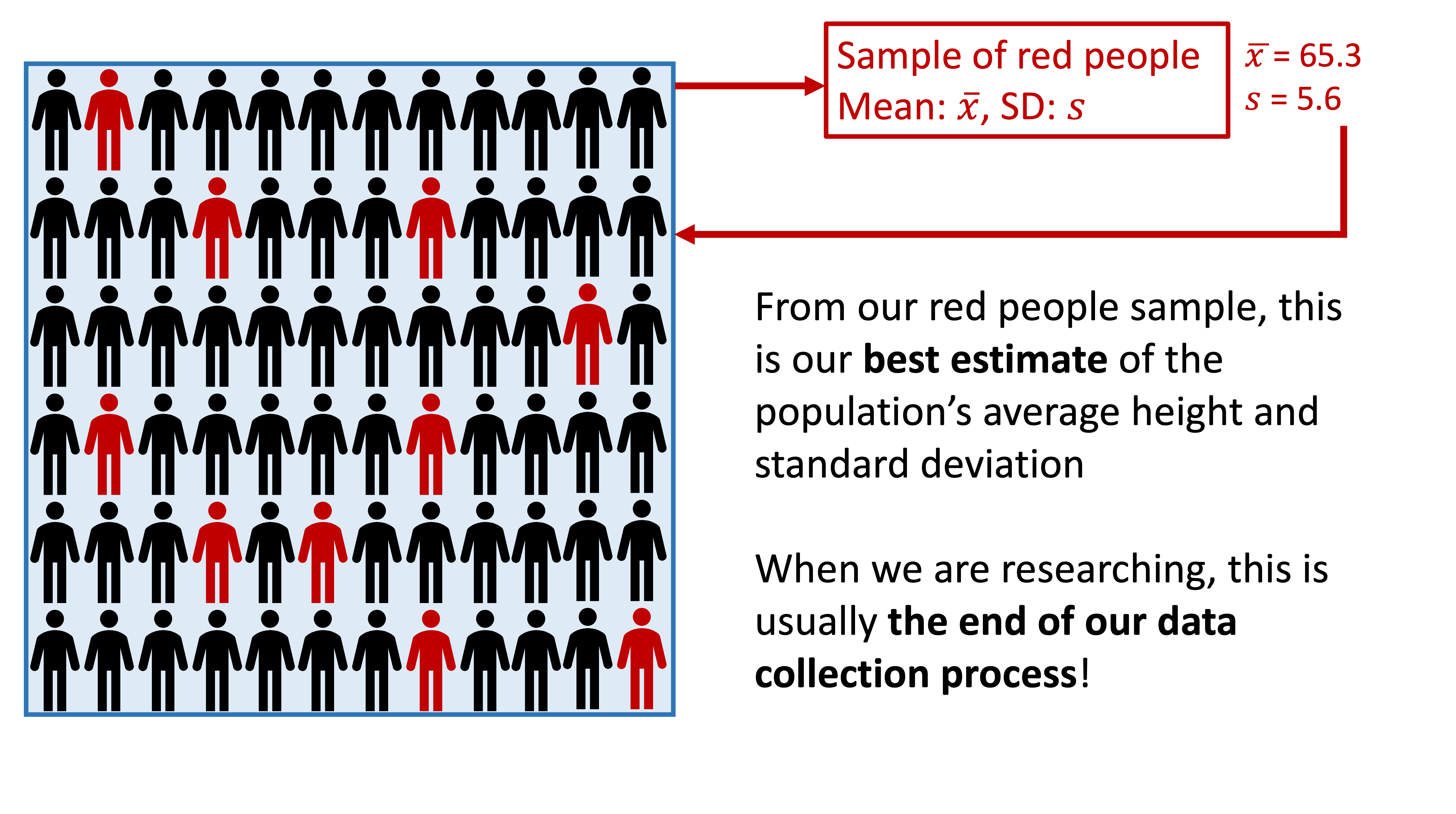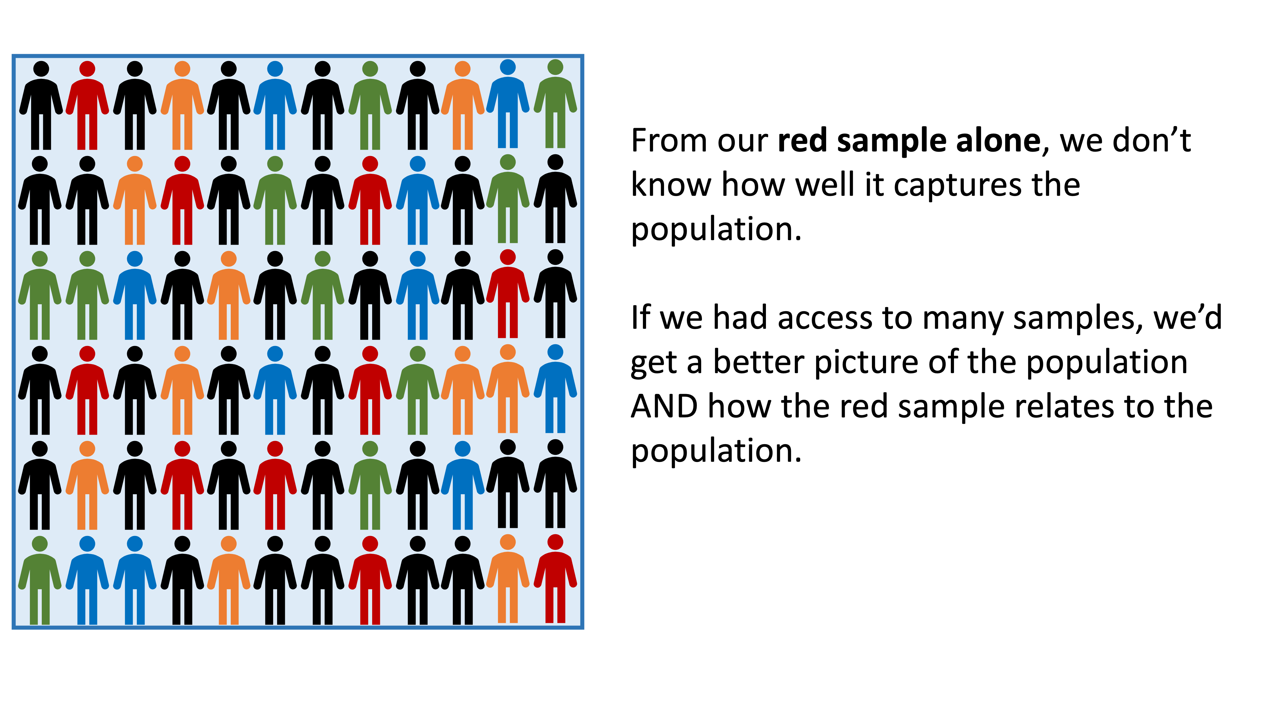However, statistics from our sample are not exactly the same as the population measurements that we’re aiming for