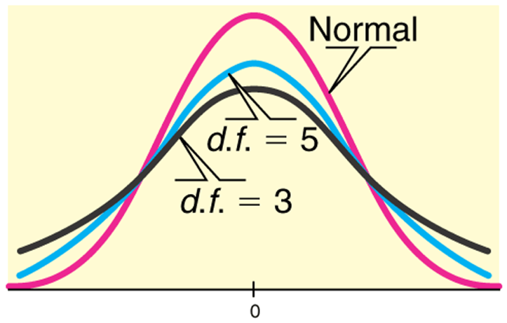 Thus when using \(s\) instead of \(\sigma\) when calculating the SE, we need a different probability distribution with thicker tails than the normal distribution.
