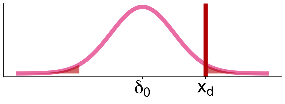 We call \(\delta_0\) the null value (hypothesized population mean difference from \(H_0\))