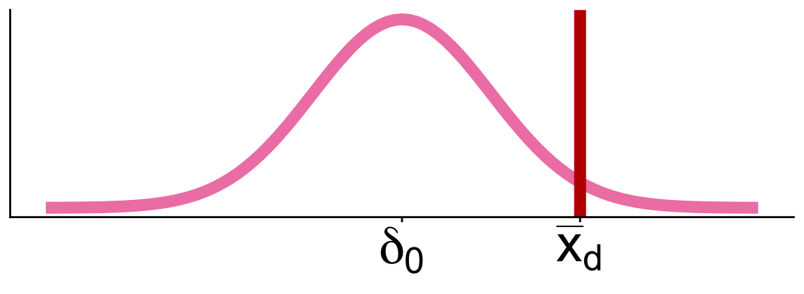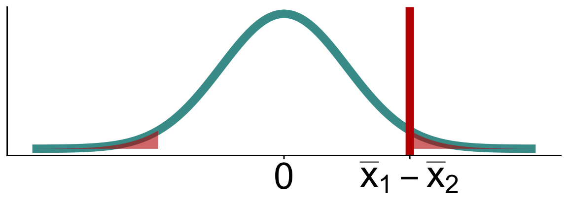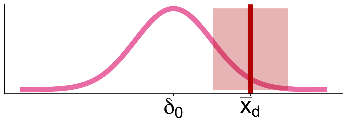 \[\begin{align} H_0:& \mu_{caff} - \mu_{ctrl} = 0\\ H_A:& \mu_{caff} - \mu_{ctrl} > 0\\ \end{align}\]