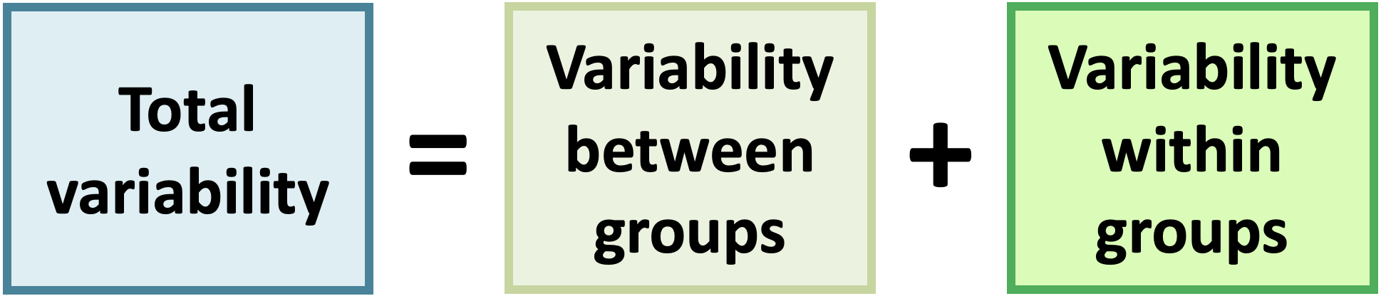 \[\sum_{i = 1}^k \sum_{j = 1}^{n_i}(x_{ij} -\overline{x})^2 \ \ = \ \sum_{i = 1}^k n_i(\overline{x}_{i}-\overline{x})^2 \ \ + \ \ \sum_{i = 1}^k\sum_{j = 1}^{n_i}(x_{ij}-\overline{x}_{i})^2\]
