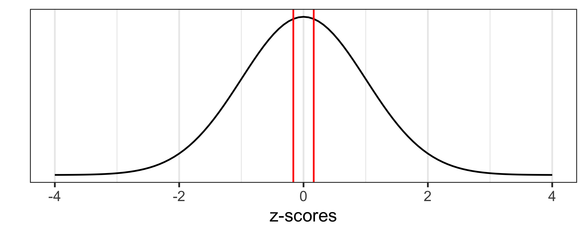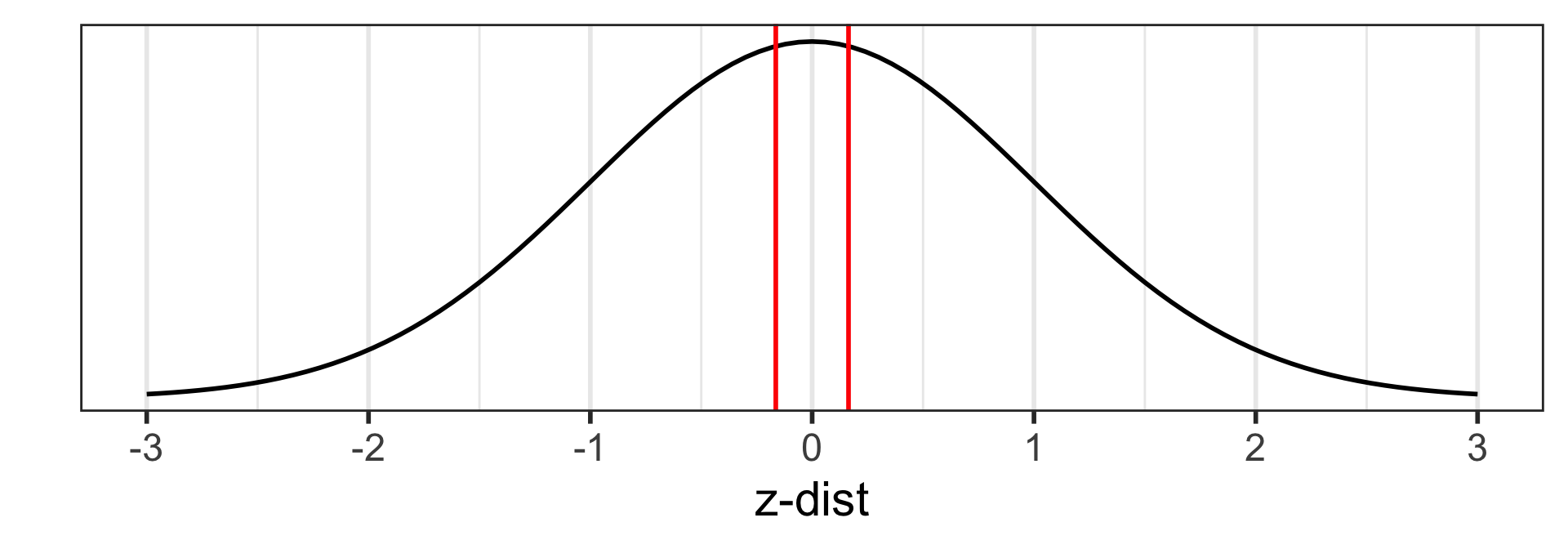 \[\begin{align} & 2 \cdot P(\hat{p}_1 - \hat{p}_2< 0.0111 - 0.0112) \\ &= P\left(Z_{\hat{p}_1 - \hat{p}_2} < \frac{0.0111 - 0.0112}{\sqrt{\frac{0.01119\cdot(1-0.01119)}{44925} + \frac{0.01119\cdot(1-0.01119)}{44910}}}\right) \\ &= 2 \cdot P(Z_{\hat{p}} > -0.164)\\ &= 0.8697839 \end{align}\]
