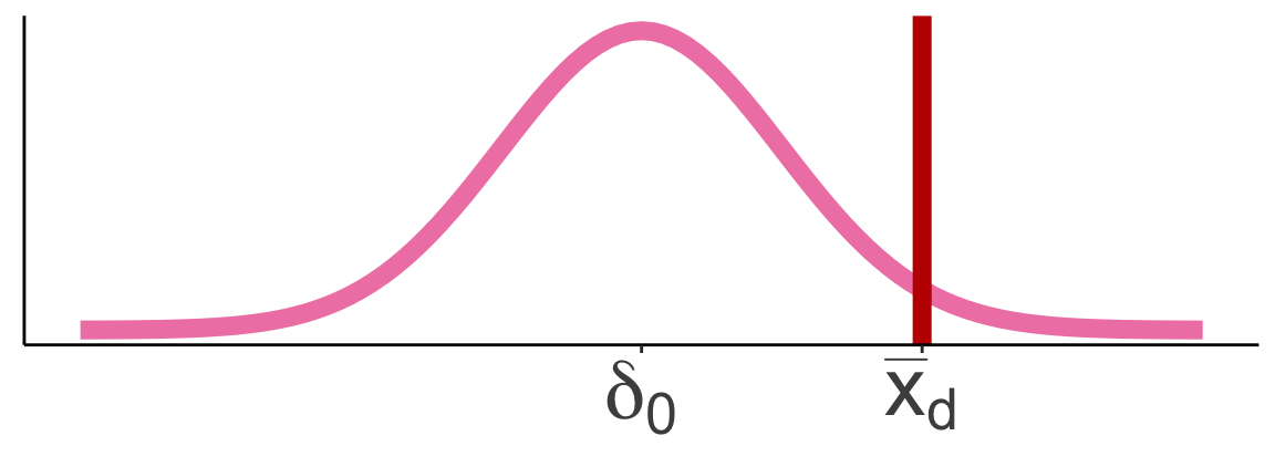 We call \(\delta_0\) the null value (hypothesized population mean difference from \(H_0\))