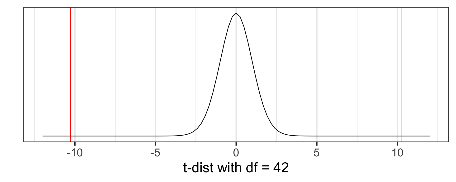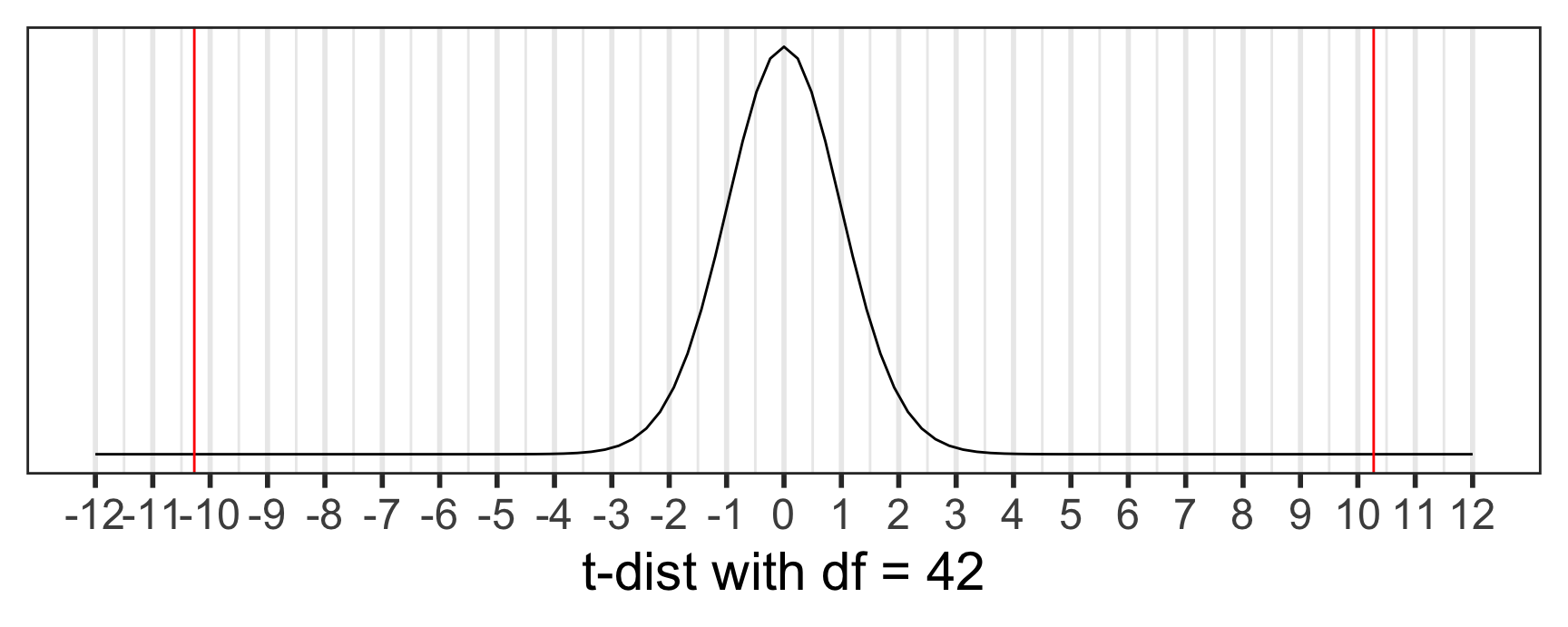 From our example: Recall that \(\overline{x}_d = -21.767\), \(s_d=13.89\), and \(n=43\)