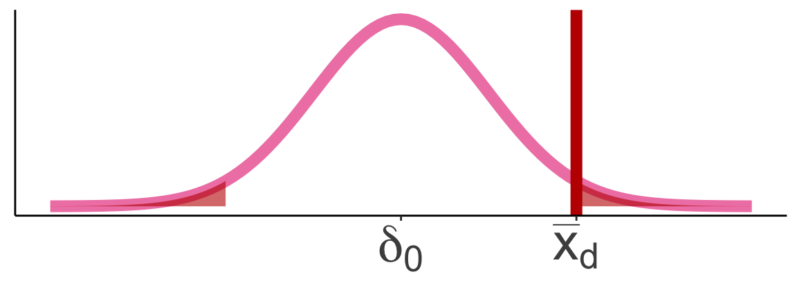 \[\begin{align} H_0:& \mu_{caff} - \mu_{ctrl} = 0\\ H_A:& \mu_{caff} - \mu_{ctrl} > 0 \\ \end{align}\]