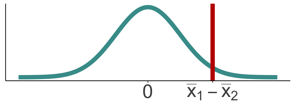 What is the mean of \(\overline{X}_1 - \overline{X}_2\)? \[E[\overline{X}_1 - \overline{X}_2] = E[\overline{X}_1] - E[\overline{X}_2] = \mu_1-\mu_2\]