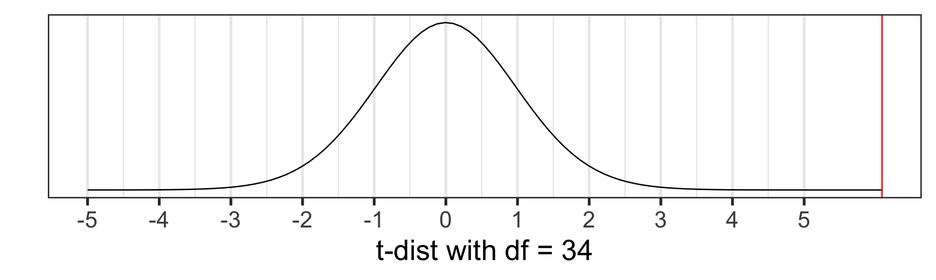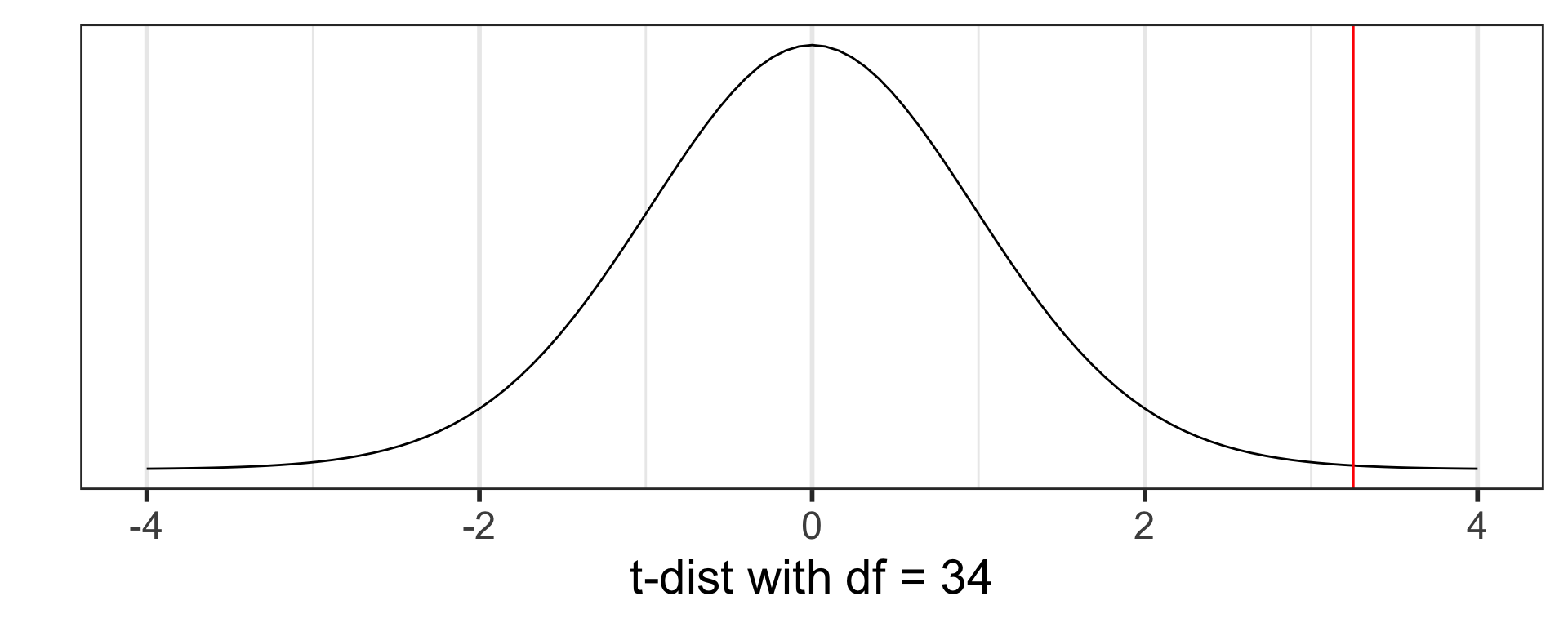Used \(t^*\) = qt(0.975, df=34) = 2.032