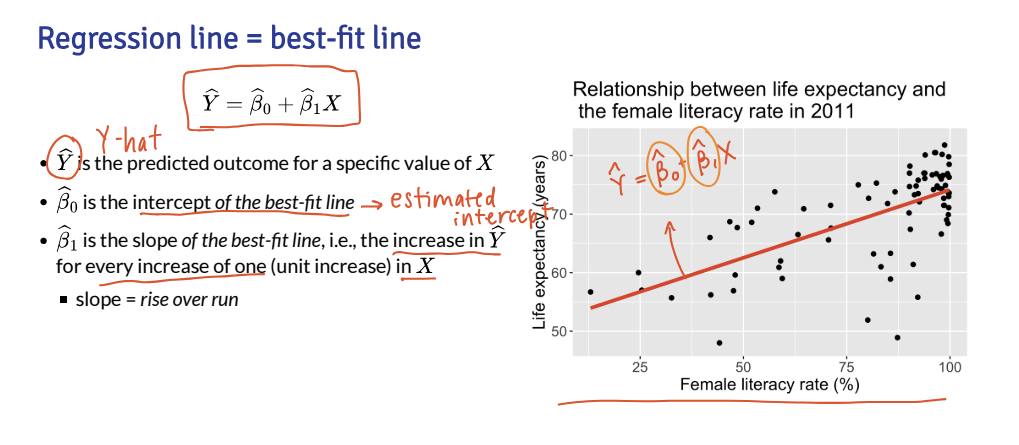 \[ E(Y \mid X) = \mu = \beta_0 + \beta_1 X\]